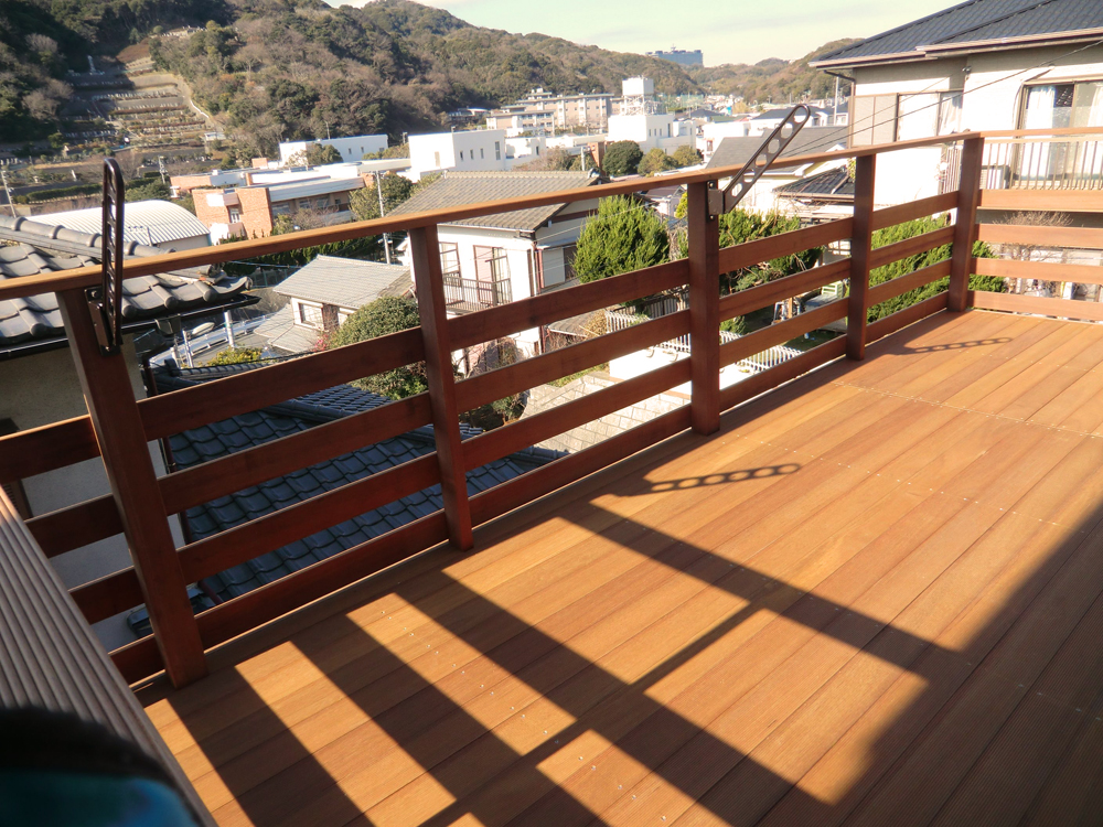 10年ほど経過したハイデッキが腐り、危険なため、色々な樹種を検討した結果、来社され、ウリン(アイアンウッド)を実感し、超耐久性に見合う施工方法・材料及び金額に納得され決定しました。