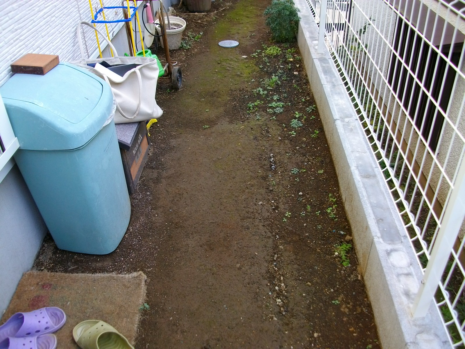 土で遊ばせてもいいですが、室内へは足を洗わないと上がれませんし、高低差が大きいです。雑草の手入れも大変ですね。