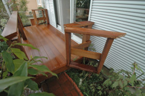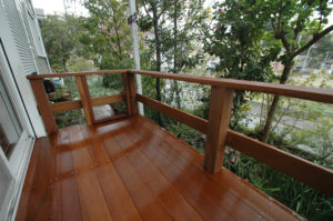 茶ノ木のウリンデッキは、床にリブ加工(半円形の凸凹)を採用してます。