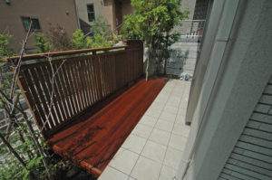 植栽を生かし、デッキを開口してます。フェンスはお隣との目隠しとなり、オシャレな縦残です。