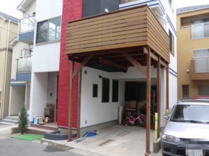 車庫上一杯まで面積を広げました。ウリンですので非常に頑丈です。