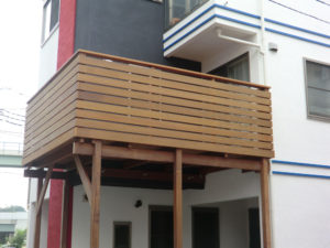 外壁のリフォームの際、既存のバルコニーを撤去し、ウリンのウッドデッキを付けました。
