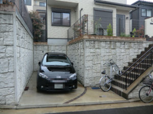 建物の高低差を利用して、車庫上と庭スペースを有効に利用します。