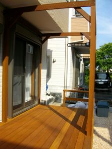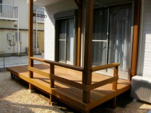 履物を履いて庭に降りずに、部屋からそのまま外に出て遊べるウッドデッキをご希望でした。