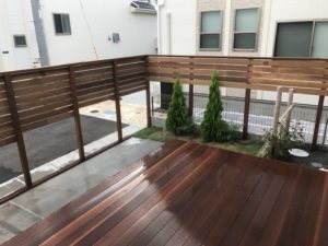 境界を囲むウリンフェンスでプライバシーを確保しました。