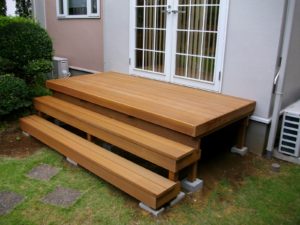(小田原市)新築のお宅は庭までの高さがあるため、ステップが必要でした。