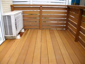 エアコン室外機は効率や将来の交換を考慮して、デッキ上に移動しました。