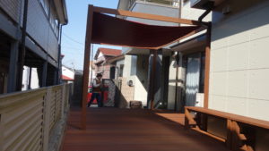 先日ウリンデッキを施工した、千葉のF様より、日除けターフのご相談です。
