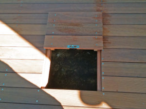 デッキ下を点検出来るよう、点検口を付けました。ウリンは重いので、あまり大きいサイズは出来ませんが、ご要望にお応えします。