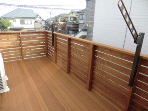 (横浜市)家のリフォームの際、使い辛かったベランダを撤去し、車庫上スペースを利用しウリンデッキを施工しました。