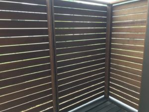 2階ベランダで既存の針葉樹フェンスが腐り始めたため、ウリンで改装です。
