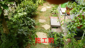 お隣との目隠しをメインに、内側にウリンデッキを施工しました。
