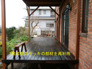 今回、家の建て替えになり、既存デッキを解体、新築後デッキの施工となりました。