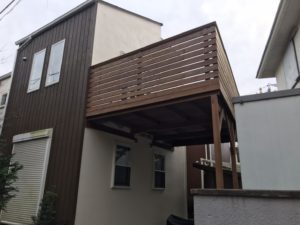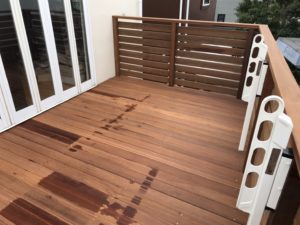 車庫上ウッドデッキが老朽化で危険になったため、二度と腐らないウリンでリニューアルです。