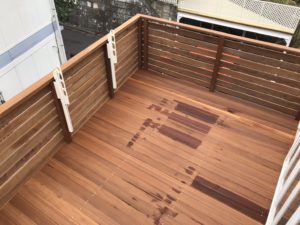 車庫上などハイデッキは腐ると大変危険です。ビスが浮いてきたり、床の一部がたわむ場合、