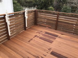 車庫上ウッドデッキが老朽化で危険になったため、二度と腐らないウリンでリニューアルです。