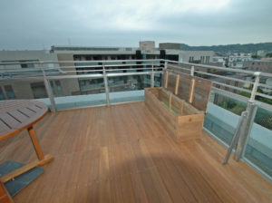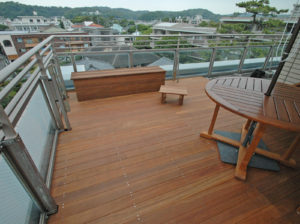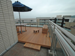 瀟洒なマンションの最上階です。無機質なベランダにウッドデッキをご希望でご相談されました。