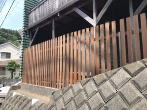 2014年に2階部分のデッキとフェンスを施工したお客様より、今回は1階道路側フェンスが腐ったため、実績のあるウリンでリニューアルのご注文です。