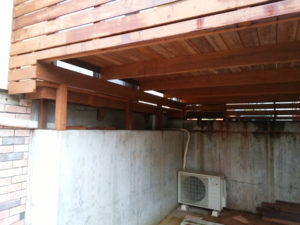 針葉樹デッキが腐りました。車庫上などハイデッキは特に危険です。