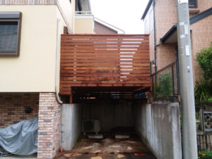 1年前からご相談を頂き、家の改修工事後に合わせ、車庫上ウリンデッキを施工しました。