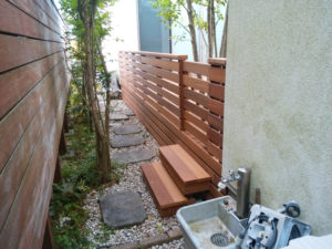 植栽を開けた、同様の仕様です。全面的にウリンでリニューアルしました。
