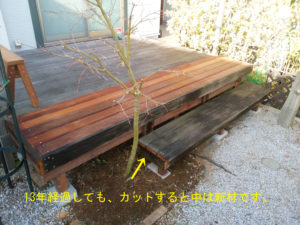 一般的に木材の耐久性はハードウッドでも、長くて10-20年程度で作り替えになります。