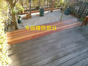 2007年にメインデッキをウリンで施工、2010年に追加柱を施工のお客様です。