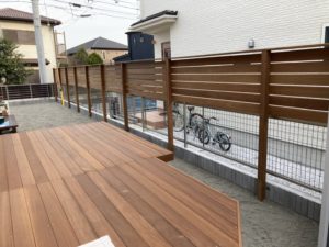 茶ノ木の施工・ウリンの良さを実感され、境界フェンスも茶ノ木ウリンをご指名です。