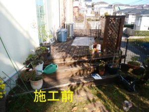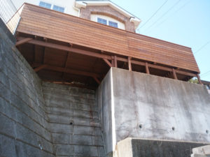 擁壁上のウッドデッキが腐って危険になったため、リニューアルのご相談で昨年来社されました。