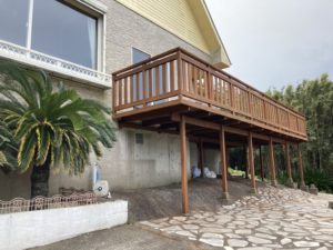 別荘の購入計画時点からご来社・ご相談を頂き、腐った既存デッキをリフォーム時に解体後、新たに約35平米の大型ウリンデッキを施工しました。