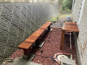 端材で、ベンチもサービスで作りました。