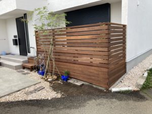 フェンスは通常(1100㎜)より高くし(1300㎜)プライバシーを確保しました。
