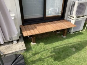 既存の濡れ縁が腐ったため、ご相談頂き、二度と腐らないウリンでリニューアルです。