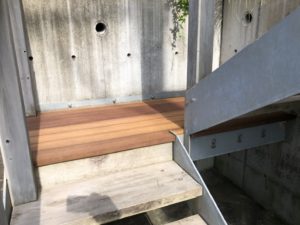 玄関へ上がる階段が腐ったため、一部をウリンで改修です。以前階段を施工したご近所からのご紹介です。