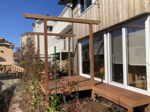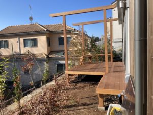 腕白盛りのお子様たちが色々遊べるように、鳥居型の簡易パーゴラを付けました。