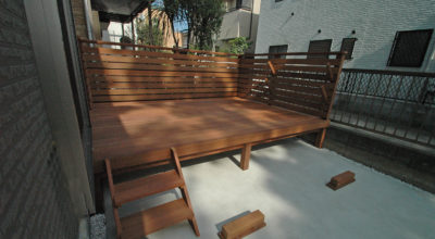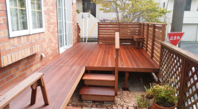 (横浜市南区) 既存の針葉樹デッキが腐り、ご相談に来社されました。 一般材のウッドデッキは数年で腐り、釘が飛び出たり、突然崩れて大変危険です。 リニューアルには最強の木材、ウリンをお勧めします。 施