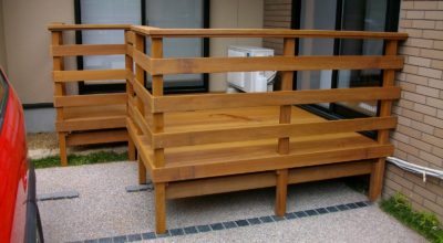 最新の施工例 7月17日 小田原市 玄関へ上がる階段から、2階を取り囲む大型ウッドデッキのリニューアル 既存デッキは、床・フェンスはウリンでしたが、肝心の下地部分がレッドシダーのため、腐食し危険な状態