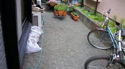 施工前 庭をスッキリとまとめ、素敵な空間を演出 完成後 (最初の写真)庭は地面のままだと、どうしてもいろんな物を置きがちで、折角の空間が勿体ないですね。「屋外」という感覚があるからでしょうか。 (