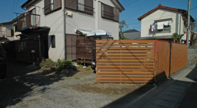 通称湘南道路すぐ脇の、絶好のロケーションにウリン(アイアンウッド)で張り出しデッキを作りました。道路側は目隠しフェンスを付け、室内からの目線の高さは隙間を広げ、水平線が見えるように工夫しました。 ウ