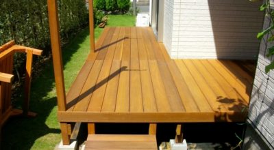 ウッドデッキが腐り、釘が飛び出して危険なため、ウリンでリニューアル 既存デッキが腐ったため、ウリン(アイアンウッド)でリモデルしました。これで一生安心のウッドデッキになりました。正面にロングステップを