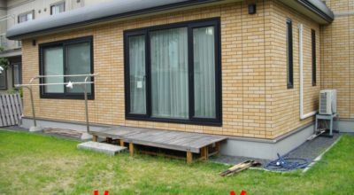 北海道は積雪・凍結があり、ウッドデッキにとって厳しい環境です。数年で既存デッキは腐るため、二度と作り替えの無い、最強木材・ウリン(アイアンウッド)をお勧めしました。 一般的に床面は日光で乾燥するた