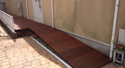 ある程度のスキルと根性があれば、DIYでウリンデッキも出来ます。 自転車を収納するスペースが欲しくて、スロープに挑戦しました。 自作とは思えない、素晴らしい出来栄えです。 敢えて幕板は付けず、すっ